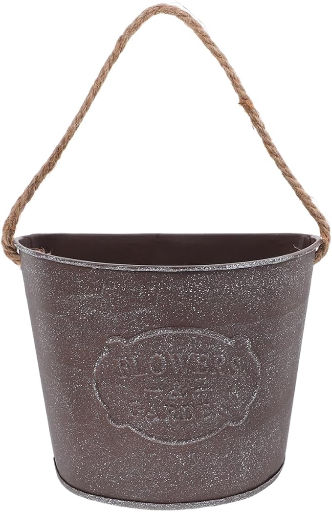 GANAZONO 2pcs Tin Wall Hanging Flower Pot Fence Decor Hanging Baskets for Plants Fence Planters for Outdoor Plant Holder Iron Wall Mounted Planter Grey Jug