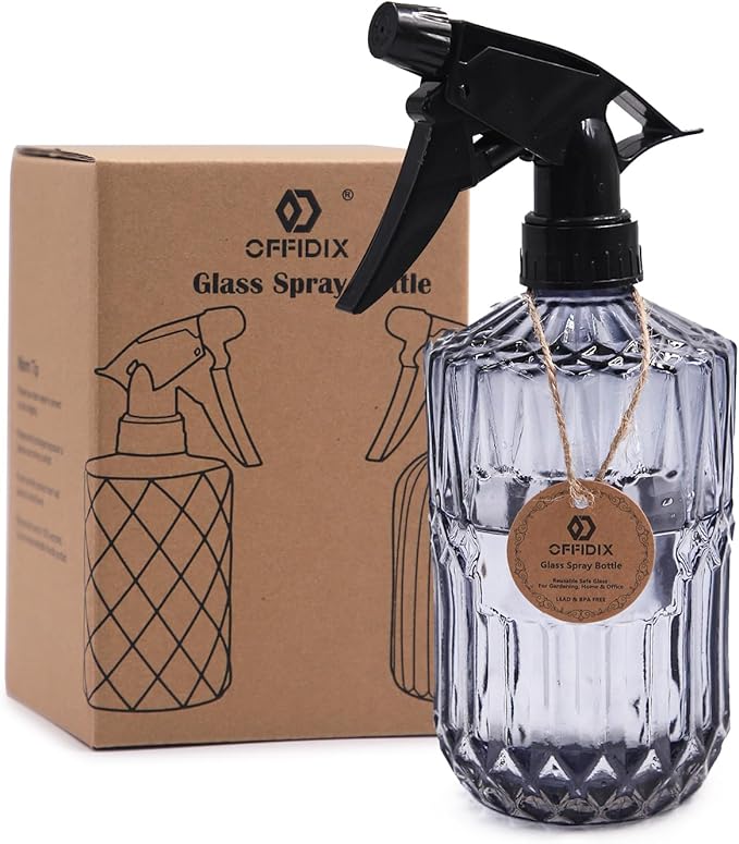 OFFIDIX Glass Spray Bottle, Fine Mist Plant Mister, Handheld Pressure Watering Can,Adjustable Nozzle Glass Spray Bottle,0.43L/15.17oz Handheld Spray Bottles for Garden Plants Cleaning Solutions(Gray)