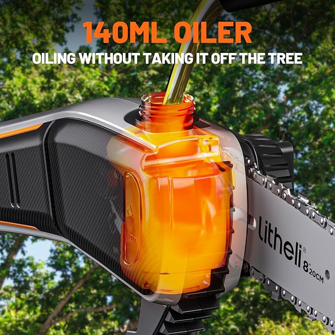 Litheli 20V Pole Saw Battery Powered for Tree Trimming, 8'' Electric Cordless Pole Chain Saw with 2.5Ah Battery for Tree Trimming 28ft/s Cutting Speed for Branch Cutting, Trimming, Pruning