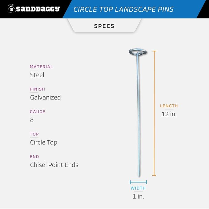 Sandbaggy 12-inch Circle Top Pins - Landscape Staples (Galvanized) - Garden Stakes for Landscaping, SOD - Heavy Duty Ground Stakes, Lawn Turf Spikes, Christmas Decorations, Weed Mats (300 Pins)