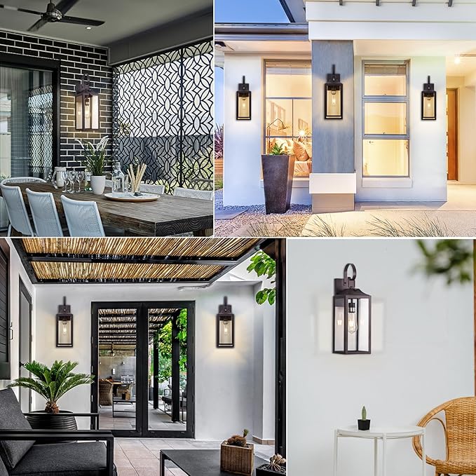 - 【Easy Installation & Wide Application】: The glass of this outdoor wall lamp is pre-assembled, and all mounting accessories are included for quick installation. Detail install operations please refer to the user's manual. The thoughtful open-bottom design makes it particularly easy for bulb replacement. This dawn till dusk sensor wall sconce can apply on the porch, patio, garage, courtyard, garden, street, and hallway.
