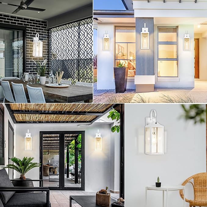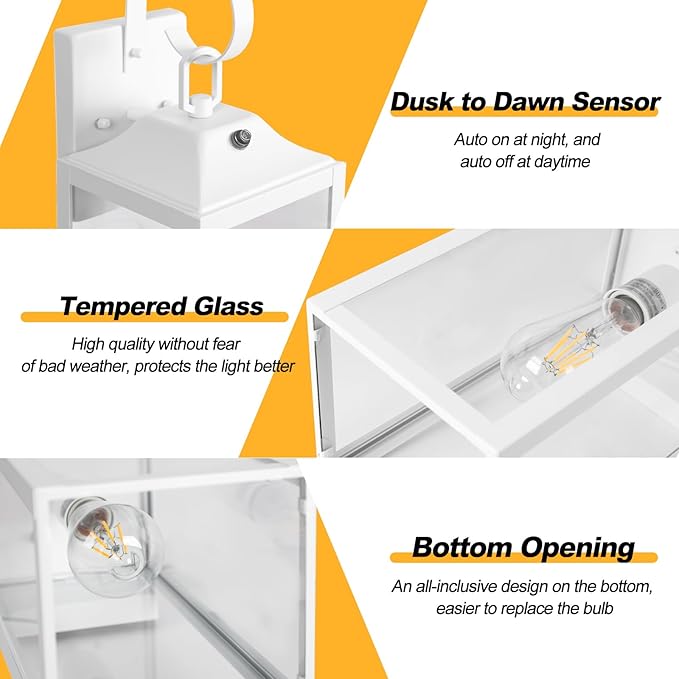 19" Large Dusk to Dawn Outdoor Wall Light, White Outside Farmhouse Wall Sconce, Industrial Wall Mount Light Fixture, Waterproof Modern Porch Lighting Exterior Lamp for House Garage