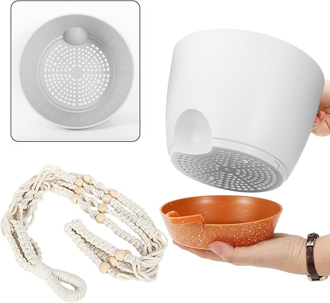 - 【Excellent Drainage Holes and Watering Lip】These flower pots for plants come with multiple drainage holes in the bottom. The holes and watering lip provide an air circulation system for the plant roots, which greatly reduces the problem of root rot of plants in a closed environment. The independent watering lip replenishes water for plants, so that water does not have to pass through the plant itself, At the same time, it is convenient to observe the current water level.