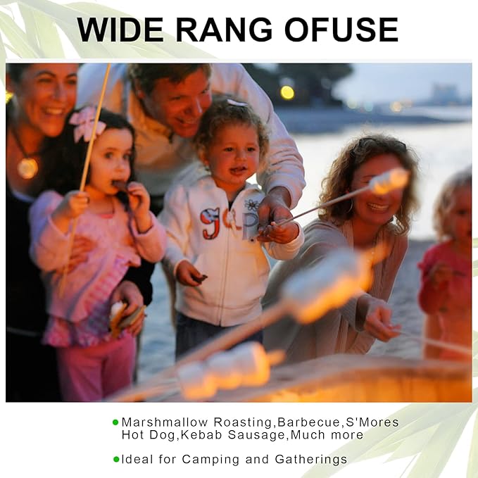 - Kid-Friendly & Safe Design - With a semi-pointed tip and a 24-inch length, these marshmallow sticks for fire pit keep your little ones at a safe distance from the campfire. The bamboo stakes design ensures safety from sharp objects while still being able to pierce food for roasting. Enjoy peace of mind knowing your kids are safe while having fun by the fire
