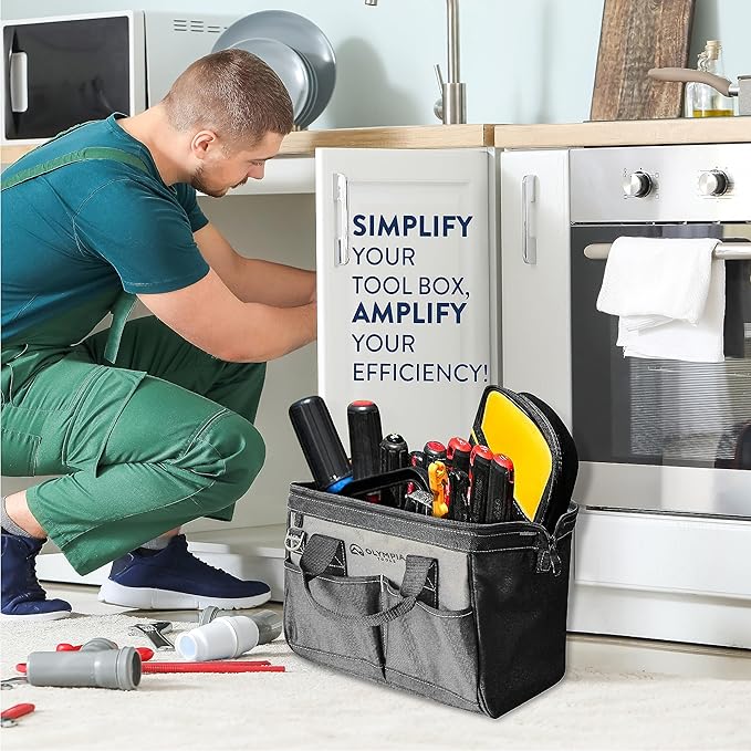 Olympia Tools Bag 12 Inch, Heavy Duty Tools Bag with 4 Large Pockets, Adjustable Shouder Straps and 600D Reinforced Material