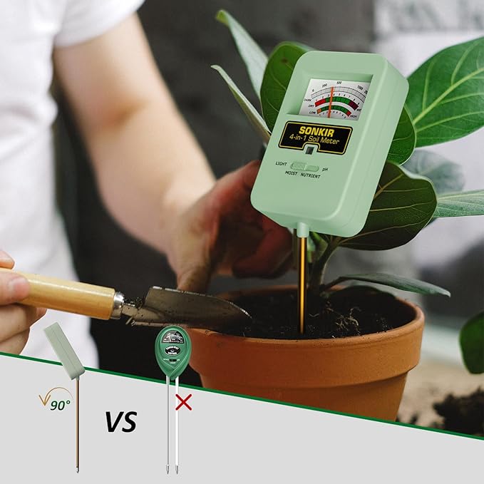 Sonkir Soil Moisture Meter, 4-in-1 Soil Ph Meter, Soil Tester for Nutrients, Moisture, PH and Light, Soil Ph Test Kits for Plant, Great for Garden, Indoor & Outdoor Use (No Battery Required), Green