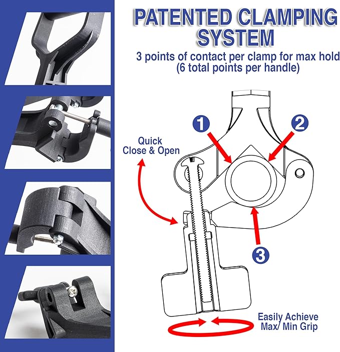 - HEAVY DUTY DESIGN - Our patented clamping system makes it easy to attach to, adjust on, and transfer from tool to tool in seconds. Made of high strength plastic, the Reach Right handle attachment works in all seasons and stays securely in place as you rake leaves, shovel dirt and snow, or trim weeds.