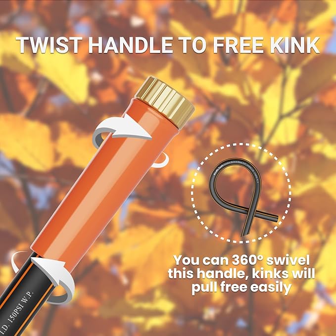 - Using Suggestion: To minimise kinking, please smooth out the water hose before use and avoid using it in a tangled state. And if your hose is kinked, please rotate swivel handle to recover it.