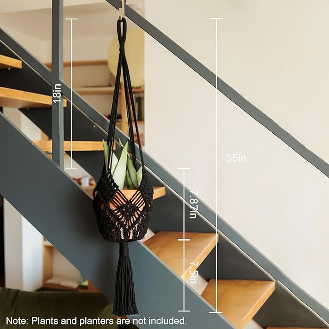 - IDEAL SIZE - You will get 2 pieces boho indoor plant hangers and 2 S-shaped stainless steel hooks, the total length of the plant hangers is about 35 inches for pots from 3 inches to 8 inches. The height of the center basket is about 7.8 inches. Measurements were taken without pots in place, please note that the length will be shortened depending on the size of the pots. Pots and plants are not included.