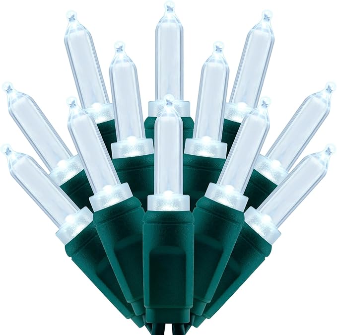 100 Cool White One-Piece LED Christmas Lights, 33 ft Green Cord High Waterproof UL Certified T5 Outdoor String Lights (Cool White)