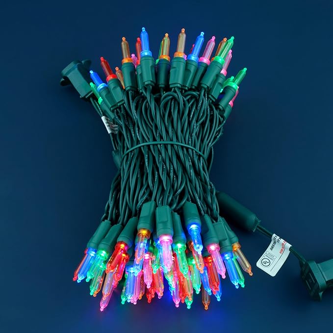 100 Multicolor One-Piece LED Christmas Lights, 33 ft Green Cord High Waterproof UL Certified T5 Outdoor String Lights (Multicolor)