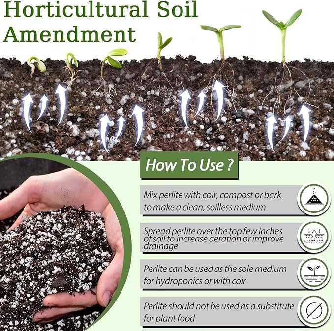 - Wide Usage: Horticultural perlite for plants can be used for seedling propagation and cuttings, soil amendments, hydroponics, rooftop gardens and so on. Great for use as soil additive for containerized plants, making plants grow healthy while looking neat and beautiful. Suitable for all kinds of tropical plants, orchids and more