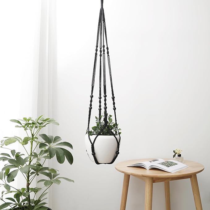 - 【Simple & Fashion】 This is simple yet stylish macromay plant hanger, it save much space of your shelf or desk. Great decoration for your office, bedroom, living room, balcony or patio. This beauty macrame hanger would be gracing your home or office.
