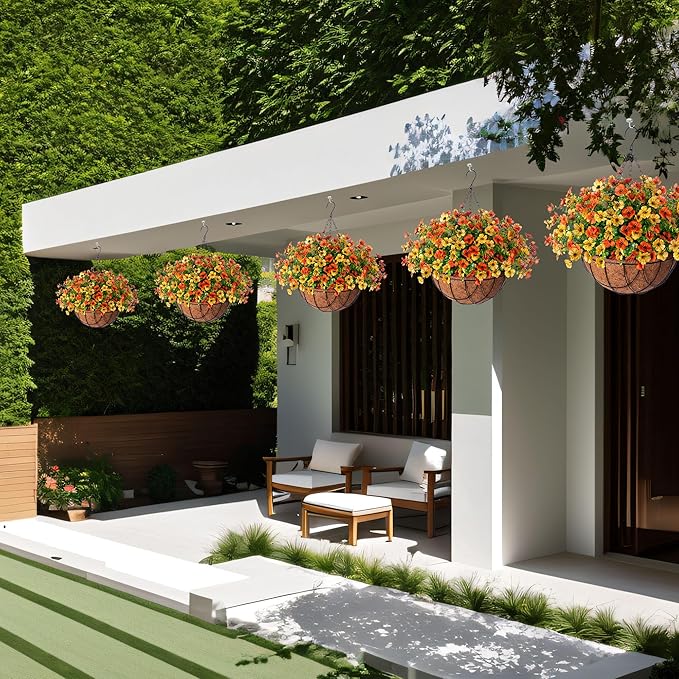 - Low Maintenance:Enjoy effortless beauty—no need for watering, pruning, or weeding. Hang these faux flowers once, and enjoy a vibrant decor every year. It is great for busy homeowners or anyone looking for a low-maintenance outdoor decor.