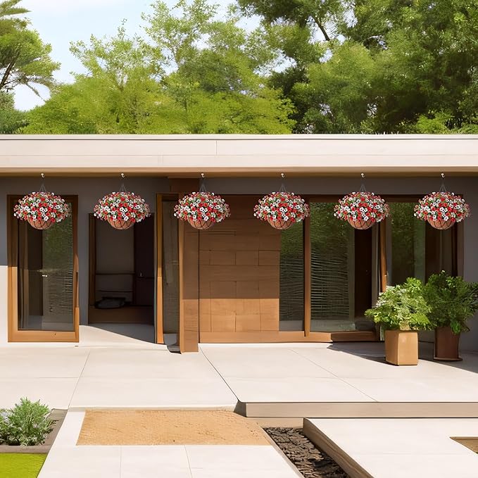 - ARTIFICIAL GREENERY DECORATION: The fake hanging flower basket looks real and stylish, making it the perfect hanging basket for your home, patio, balcony, garden, indoor and outdoor. It blooms all year and adds a sense of spring to your home