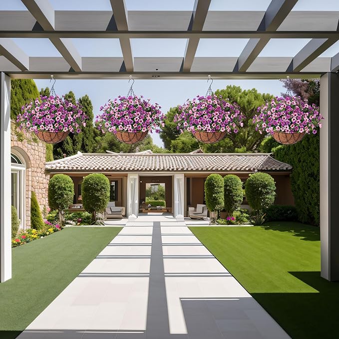 - ARTIFICIAL GREENERY DECORATION: The fake hanging flower basket looks real and stylish, making it the perfect hanging basket for your home, patio, balcony, garden, indoor and outdoor. It blooms all year and adds a sense of spring to your home.