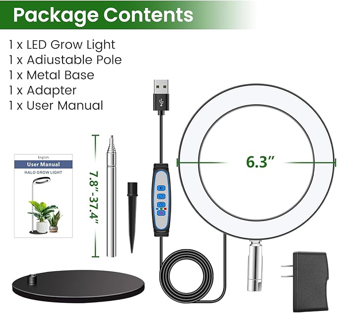 - Two Installation Method: This plant light can be inserted into the soil or placed on the table. 6.3in metal base and non-slip pads to ensure the stability of the table, and is equipped with 9.8 to 37.4in adjustable pole, or inserted ABS sharp to the soil.