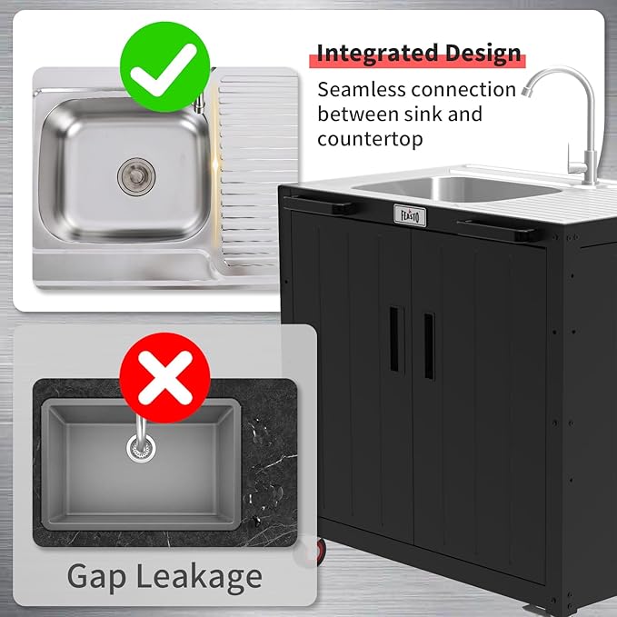 - Multi-Function: The freestanding 304 stainless steel outdoor sink station with drainboard is fantastic as commercial sink or domestic use such as outdoor restaurant sink, indoor or outdoor kitchen sink as its unique wheels. Meet your multiple needs in your house