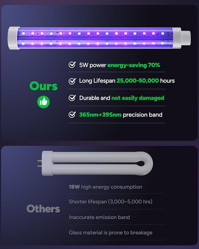 - Long-Lasting & Cost-Saving: The fly killer boasts LEDs with a long lifespan of 25,000~50,000 hours, reducing replacements and saving about 70% lamp maintenance costs. (Bulbs are replaceable.) This electric bug zapper is U.S. EPA registered.