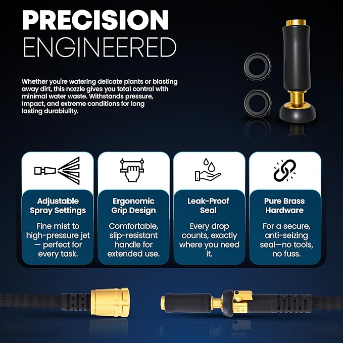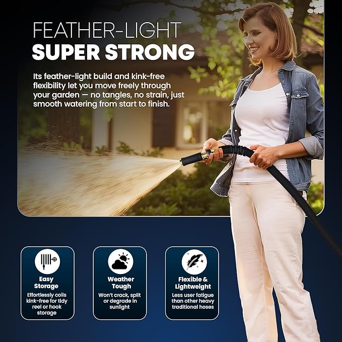 - [Feather-Light, Super Strong] Redefining watering with its incredibly lightweight design, experience unmatched watering efficiency with our Titan garden hose. When paired with our precision-engineered nozzle, this hose delivers exceptional pressure for everyday watering tasks while saving you water. Ideal for garden maintenance, vehicle cleaning, RV, marine use and more, for a powerful and consistent water flow.