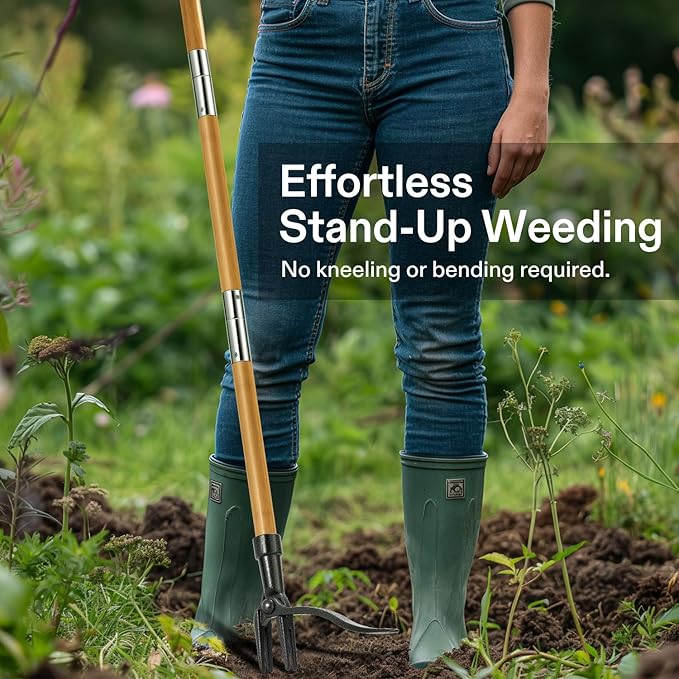 - Sturdy & Durable: Featuring a long bamboo handle and a coated steel head, this heavy-duty weed puller is rustproof and built to endure prolonged outdoor use