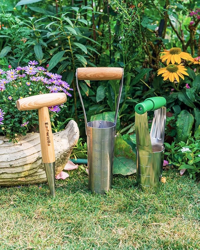 - LIGHT AND EASY TO MANOEUVRE - Ergonomically molded, non-slip, injected handle are extremely comfortable and designed for extended use. Peg hole molded into the handle end is great for hanging up and storing after use. Eadwiella small planter that are durable, robust, and efficient, helping to provide comfort and good posture when kneeling to plant small bulbs.