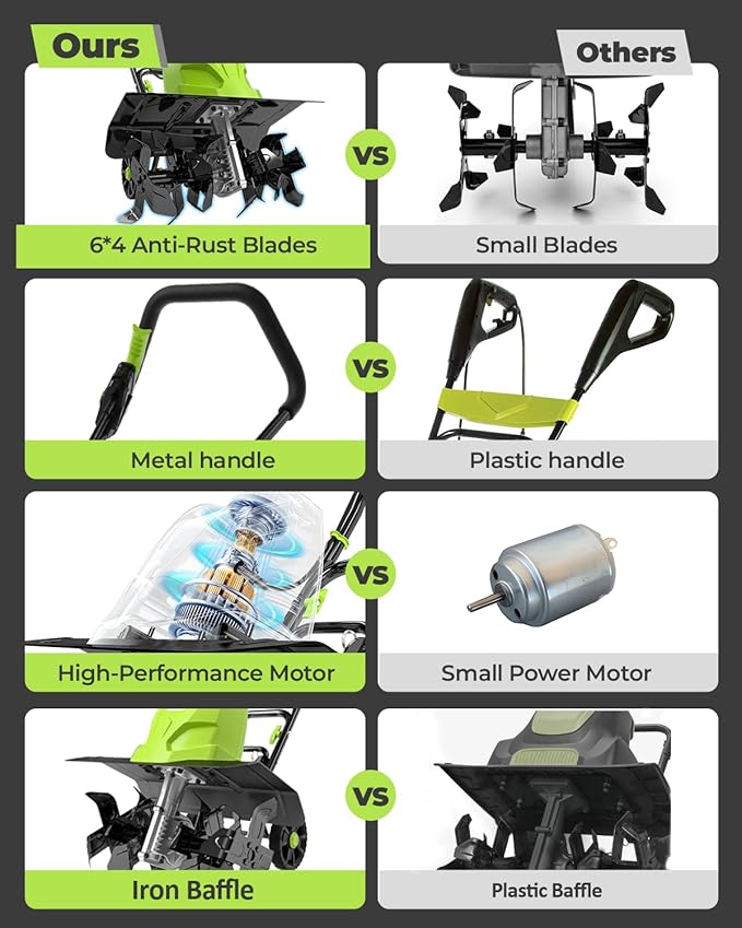- πππ π ππππππππππ ππππ Garden cultivator tool with the double safe feature, safety button, and over-temperature protection not only keep human people safe but also keep the machine safe, with a long life.