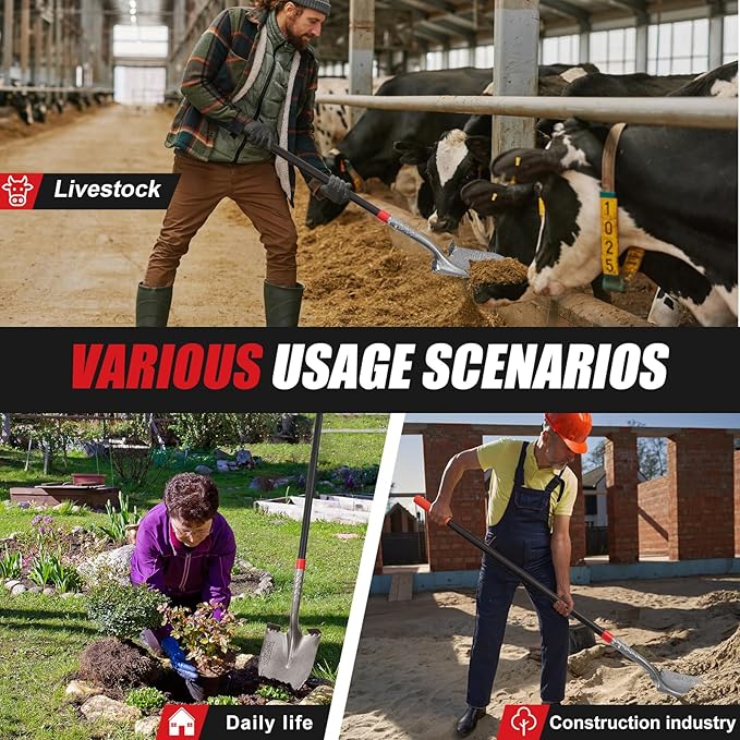 - HIGH QUALITY - The spade shovel head is made of 1050 manganese steel with a fiberglass handle, which is strong and load-bearing