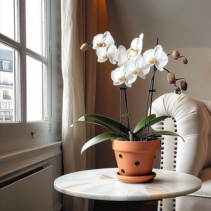- 3. Premium Quality Terracotta: Crafted from high-quality terracotta material, our pots are durable and offer excellent breathability, ensuring the well-being of your orchids.