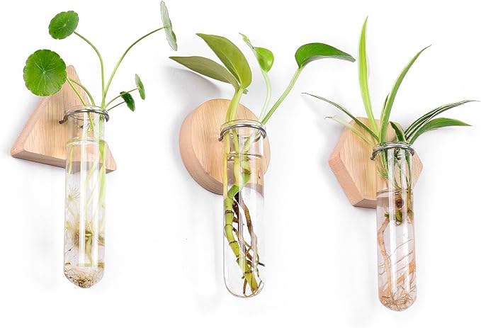 MITIME Wall Hanging Planter Glass Plant Propagation Station,Geometric Wooden Stand for Home Office Decoration.