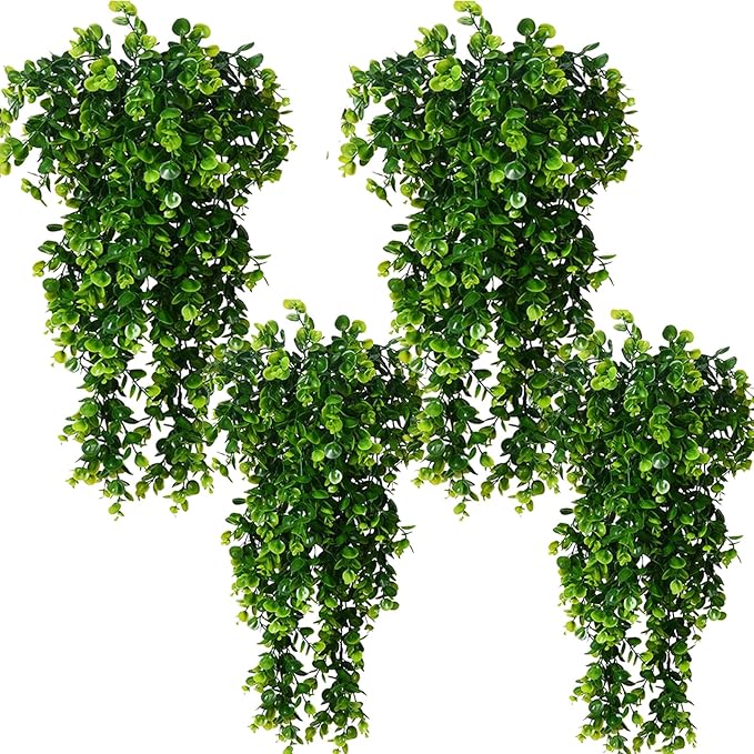 Hanging Fake Plants,4 Pcs Faux Eucalyptus Leaf Greenery Vine Plant Faux Plants Fake Ivy Room Decor Home Garden Wedding Party Indoor Outdoor Decorations (Fake Vines)