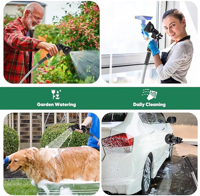 Garden Hose 100ft, Heavy Duty Stainless Steel Water Hose with 10 Functional Nozzles, No Kink, Lightweight and Flexible, Easy to Use and Store, Strong and Sturdy, Suitable for Yard and Lawn1