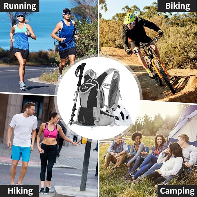 - đ´âăExtensive ApplicationsăThis hydration pack is Perfect sports gear you hydrated while running, marathon, cycling, hiking, skiing, climbing, race and training or any adventure outdoors. And it has a helmet organizer pocket Carry trekking poles on both sides for your need. A decent Holiday Gift for families and friends who love outdoor sports. especially yourself! IX INOXTO hydration backpack is always be there for you.