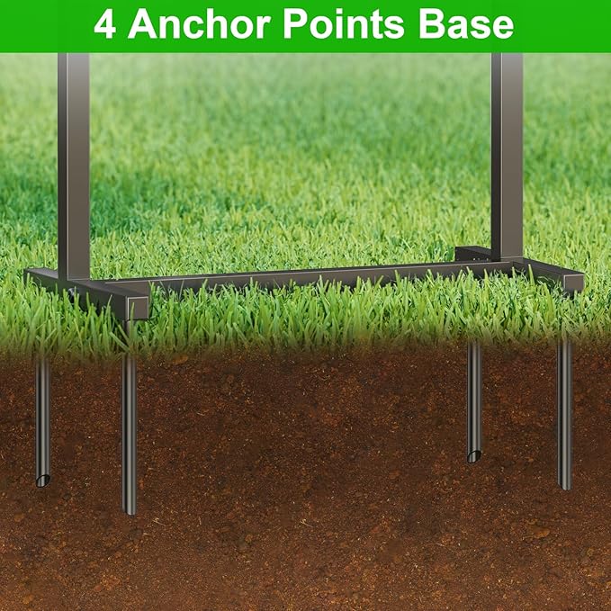 - [Stabilized Base with 4 Anchor Points]: Our water hose organizer comes equipped with an advanced base design featuring four reinforced anchor points for unparalleled stability. This ensures your hose holder remains upright even under the weight of a full 150FT hose, preventing tipping and enhancing durability.