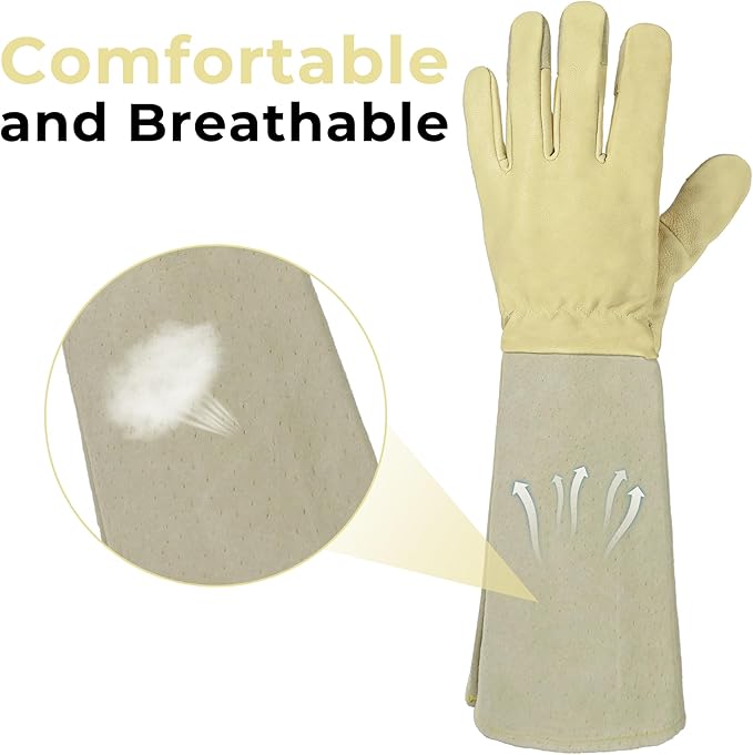 HLDD HANDLANDY Long Gardening Gloves, Leather Thorn Proof Rose Pruning Glove for Men & Women, Great Gift for Gardener