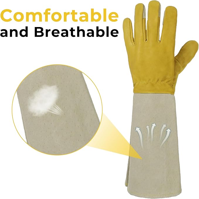 - 【Flexible & Breathable】 - The whole gloves are made of Pigskin Leather, they are easy to work with and lightweight enough as to not make your hands tired. They are flexible and breathable, great for every day gardening.