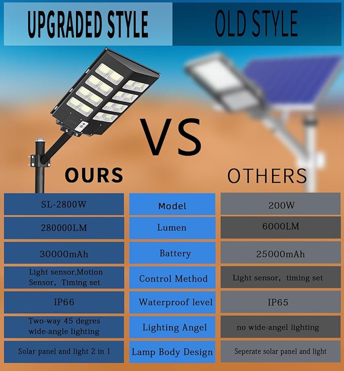- 【Super Wide Angle Lighting 】 — The upgrade solar parking lot lights are designed with 220 degrees wide-angle lighting, which can provide a wider range of lighting and brighter light compared with ordinary street lights. Illumination area up to 2000-2200sq.ft, lighten up Illumination blind spots. Escorting the safety of you and your family. The first choice for night lighting.
