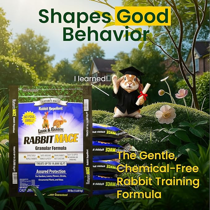 Nature's MACE Rabbit MACE Granules, 150 Pounds, Treats 95,000 sq ft, Rabbit Repellent Outdoor, Granular Rabbit Deterrent for Plants, Garden, Flowers, Landscape, Safe to use Around People, Pets, Plants
