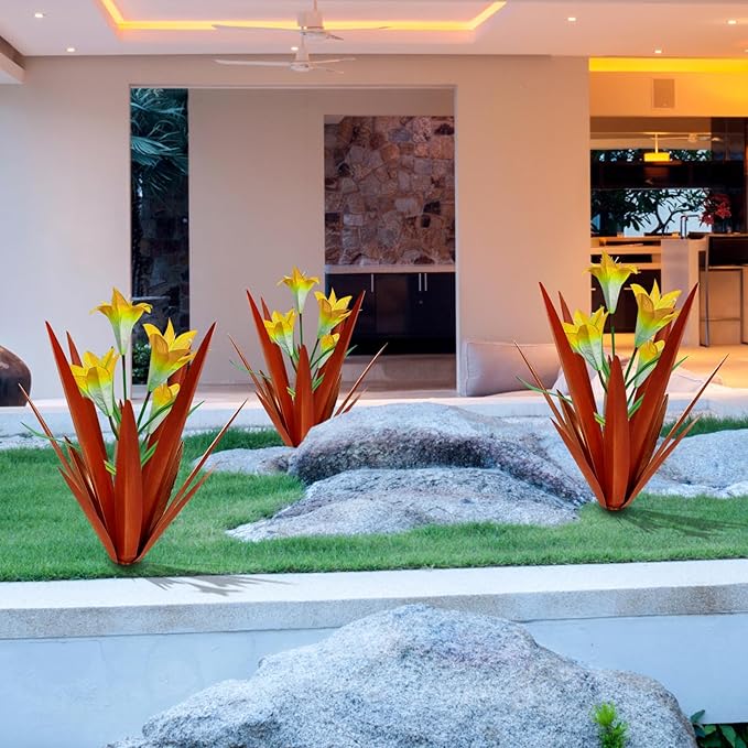 Homight Metal Agave Plant Outdoor Decoration Lily Mexican Yard Art Garden Gift Home Decor Hand Painted Metal Agave Garden Yard Statue, Outdoor Lawn Ornaments(3 Big Yellow Lilies)