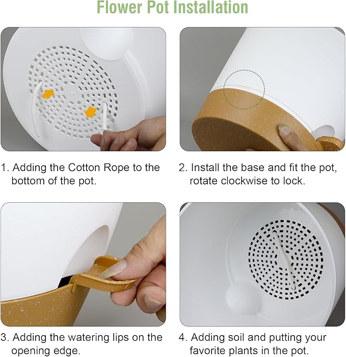 - 【Self-Watering Design】 Self-watering pots is includes a water reservoir at the bottom of the planter. This flower pots automatically supplies water to your plants as needed by a cotton rope, reducing the frequency of watering and ensuring your plants never go thirsty. The reservoir design also helps maintain a consistent moisture level, fostering optimal growth conditions.