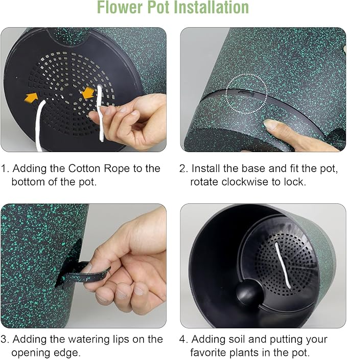 - 【Self-Watering Design】 Self-watering pots is includes a water reservoir at the bottom of the planter. This flower pots automatically supplies water to your plants as needed by a cotton rope, reducing the frequency of watering and ensuring your plants never go thirsty. The reservoir design also helps maintain a consistent moisture level, fostering optimal growth conditions.