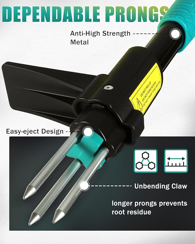 - 【Dependable and Proven Prongs】:Our Weed Puller Tool with Long Handle boasts extended prongs that surpass others in length, ensuring a superior hold on weed roots for thorough removal without any leftover residue. Crafted from robust metal, the prongs retain their strength without bending and showcase resistance to rust and corrosion.