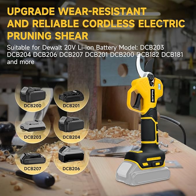 - 【COMPATIBLE FOR DEWALT BATTERY MODELS: 】RexLeLXB cordless pruner powered by Dewalt 18V/20V battery model: DCB203 DCB204 DCB206 DCB200 DCB206 DCB207 DCB201 DCB200 DCB180 DCB182 DCB181 lithium-ion battery branch cutter; (Tool Only, No Battery)
