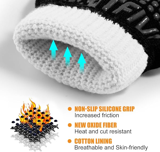 - Heat Resistance:Our oven gloves are made with a high-temperature resistant fiber material on the outer layer, allowing them to withstand temperatures up to 1472°F. This makes them perfect for grilling, baking,smoking, or cooking activities, providing heat insulation protection whether in commercial kitchens or home BBQ setups.