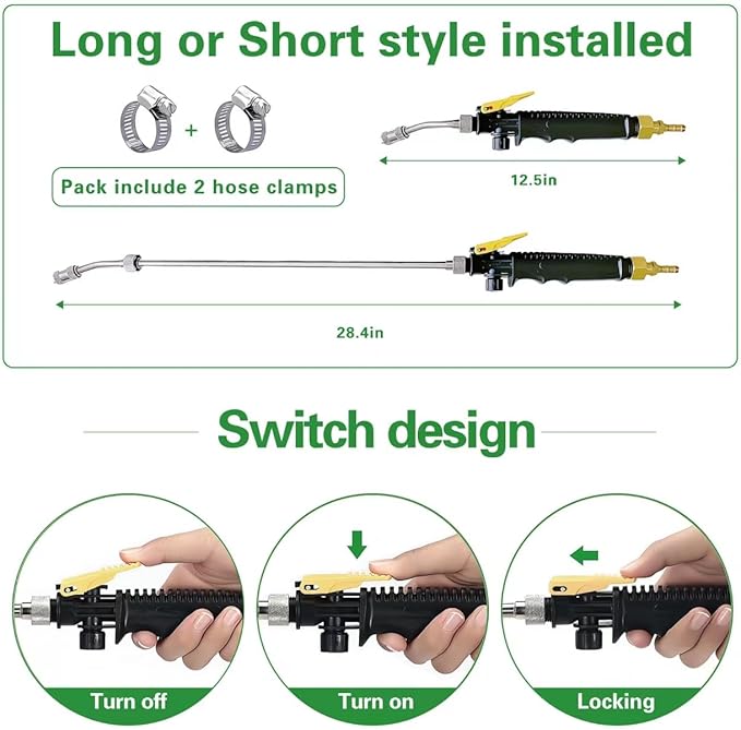 - 【Lockable Switch Handle】The metal handle has a locking feature to reduce hand fatigue.