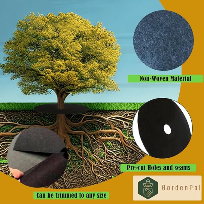 - 5. Versatile Use: In addition to trees, this non-woven ring can also be used around shrubs, flower beds, and other garden features to provide weed control and define planting areas.