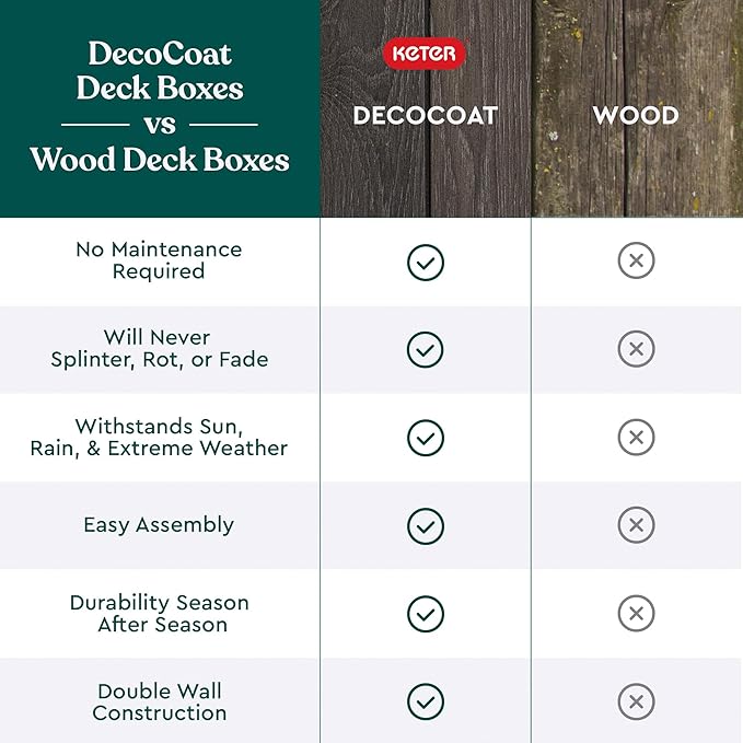 - With it's stylish design this deck box is meant to be seen in your backyard and not hidden