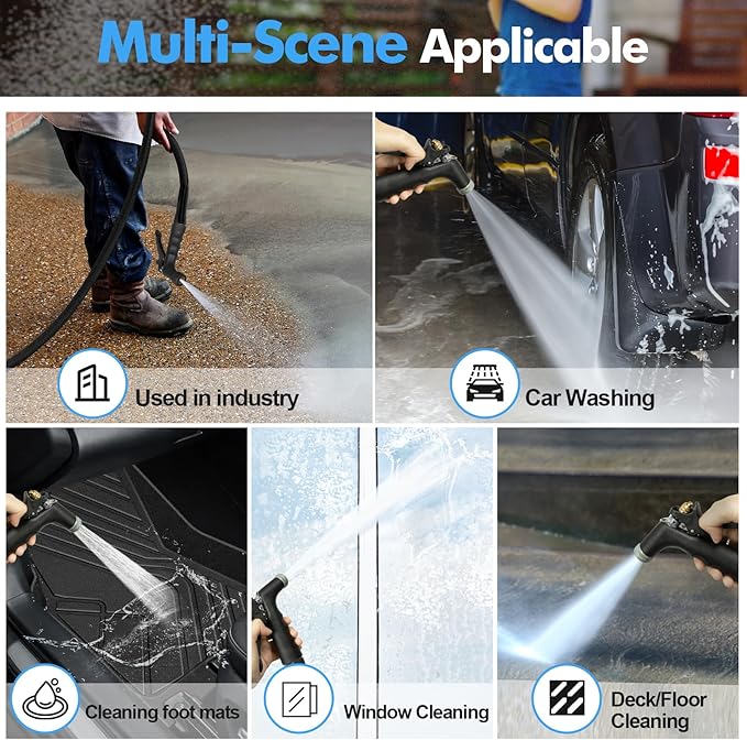 - High Pressure Flow: Industrial hose nozzle made of zinc alloy and TPR for hot and cold water use. Rupture pressure 600psi / Working pressure 200psi. The nozzle can be used for soft watering of the garden yard or for powerful high pressure for car washing, floor cleaning or industrial use