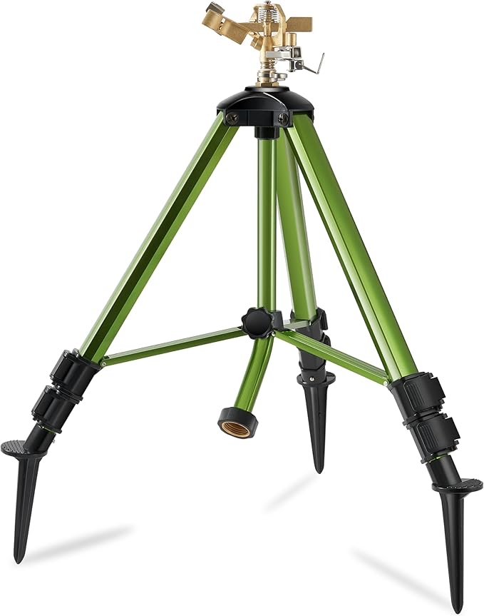 - 【Premium Quality】FANMIAOHOME tripod lawn sprinklers is made of premium quality material.Solid alloy for the tripod to prevent rust, corrision, can last for a longer time. Whether it's the adverse weather without succumbing to breakage,rust or corrosion.