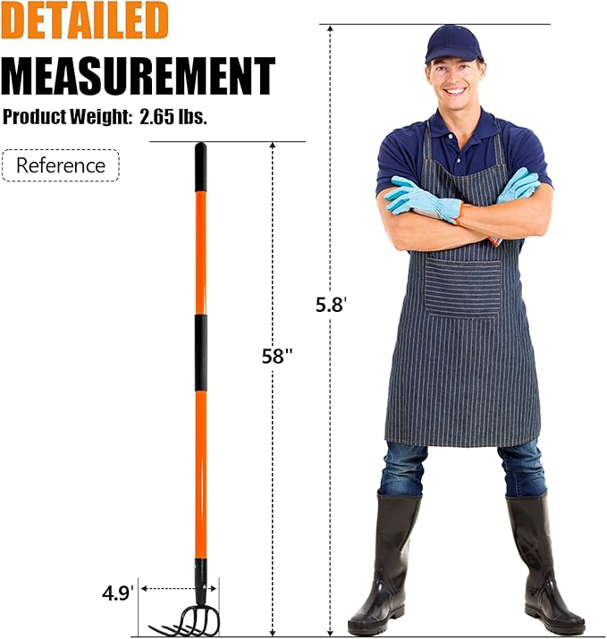 - Full Size: The total length of the cultivator is 58 inches with a weight of 2.6 pounds, suitable for adult use, the full-size design effectively reduces the pressure on the waist to make long time use easier and efficiently complete the gardening.